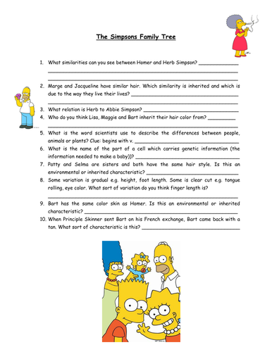 simpsons family tree worksheet