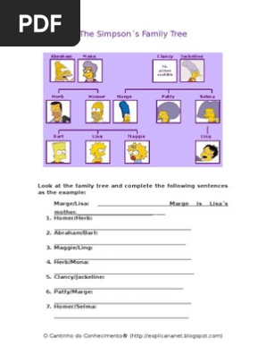 Family tree worksheet The Simpsons. 115 Live Worksheets Worksheets that listen. May 10 2018 - This worksheet has The Simpsons family tree which is helpful to create sentences using possessive nouns.